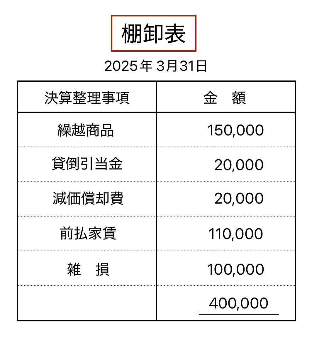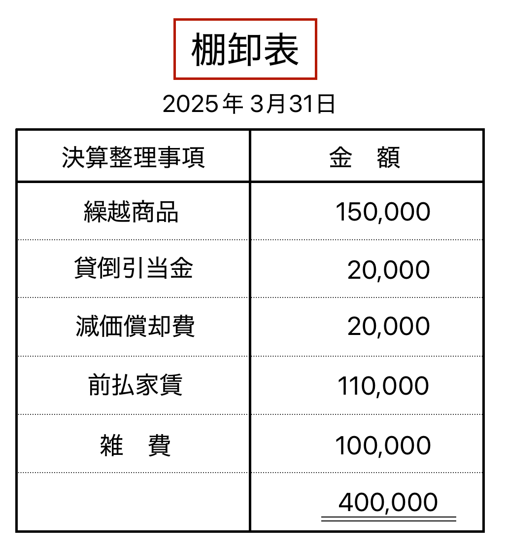 右下の二重線が引いてある400,000円は決算整理事項の合計金額になります。