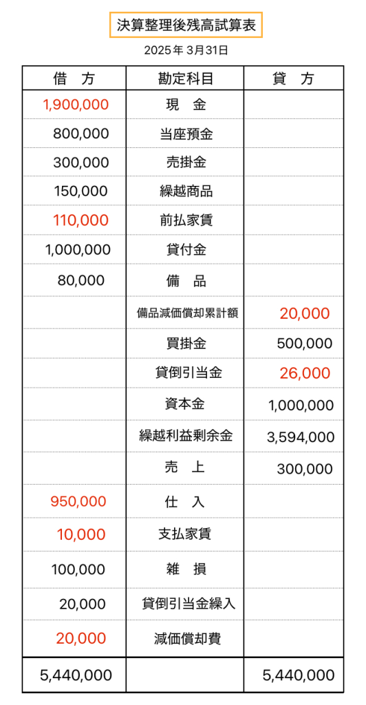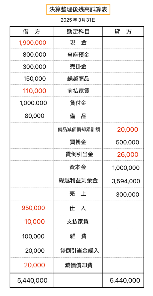 決算整理後残高試算表