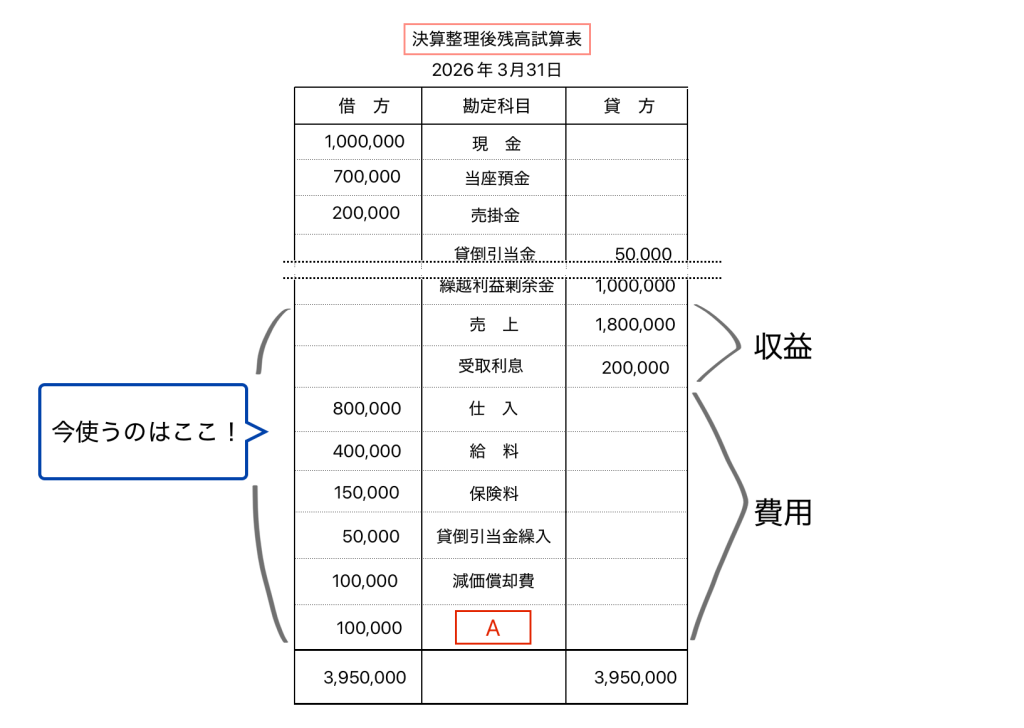 そうそう、空欄Aの勘定科目については後々解説しますので今はこれも費用の勘定なんだなぁ、くらいでスルーしてください。