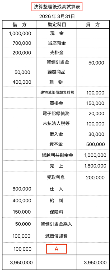 決算整理後残高試算表の空欄Aはこの仕訳けだったのですね。
