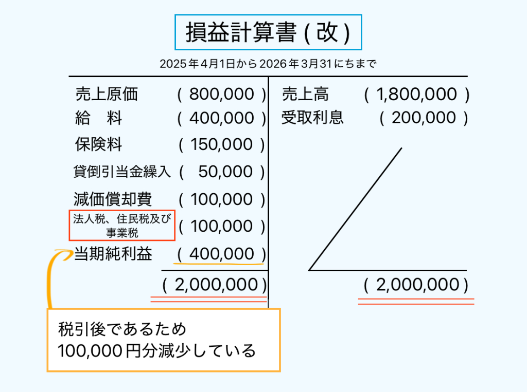 実は省略されていましたが、あの時借方に振り替えた損益勘定 (当期純利益) はすでに税引された後のものだったんです。