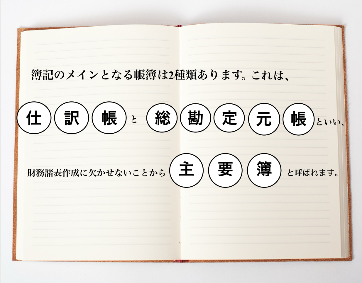 『簿記のメインとなる帳簿は2種類あります。これは仕訳帳総勘定元帳といい、財務諸表作成に欠かせないことから主要簿と呼ばれます。』